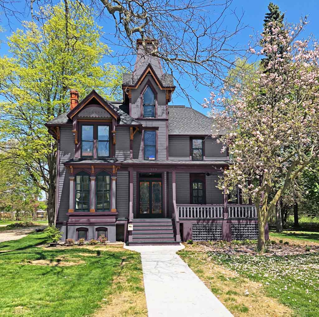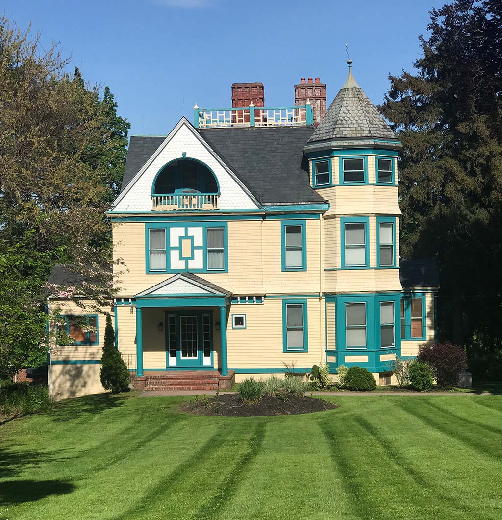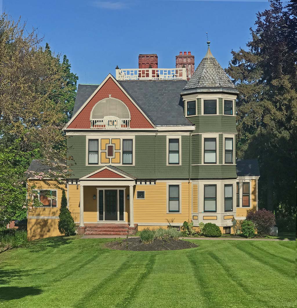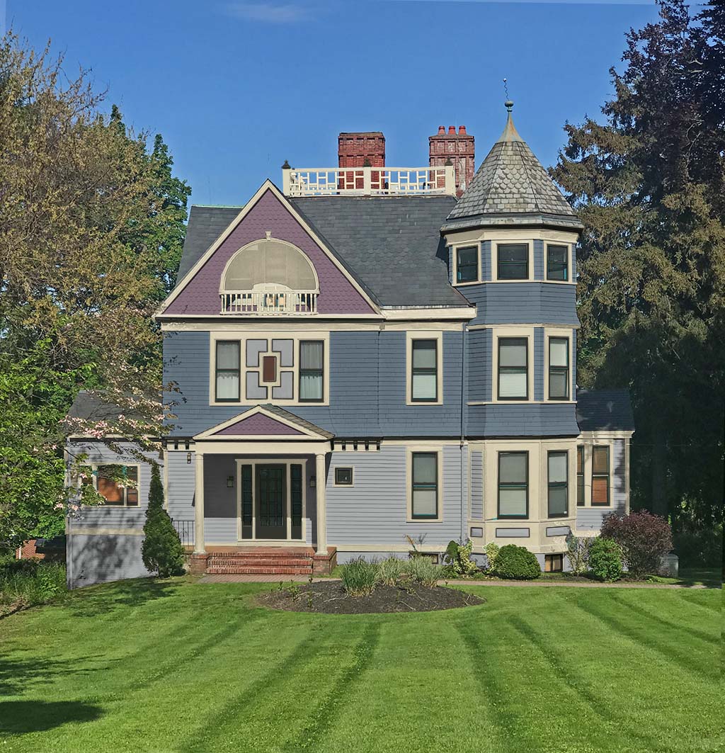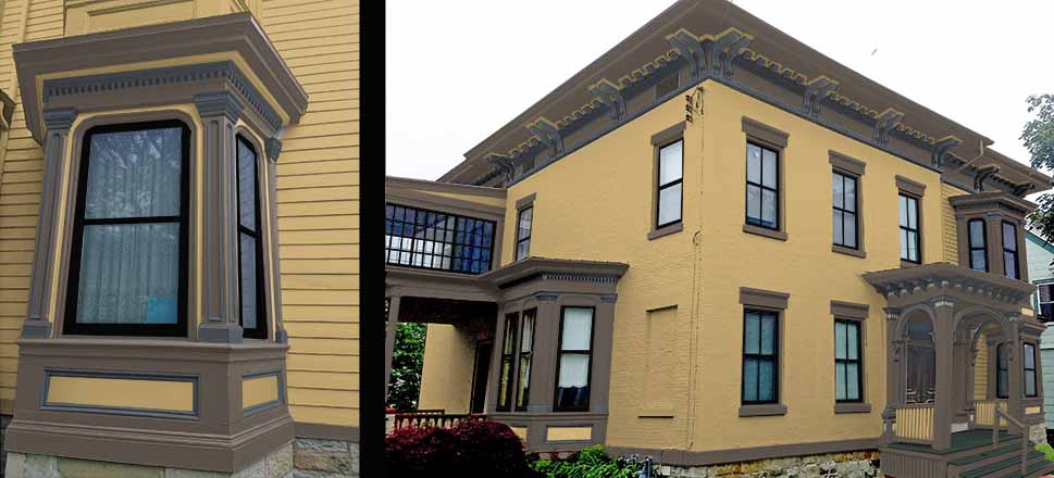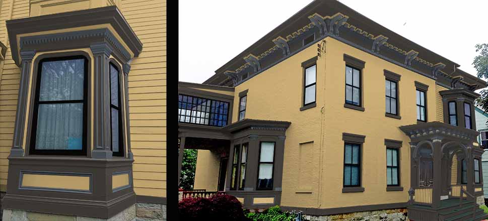 I rarely do Painted Lady houses because they are extremely difficult to do, cost the homeowner 2-3 times my regular fee and still not worth the amount of analyzing I need to do. Seriously – I need to spend a lot of time just studying the house and how the construction of the trim details. There is a logic to color placement and it is difficult to follow and see if a house like this has the colors in the right places. With all the color confusion maybe it doesn’t really matter to most people but it should. The blue is the before photo. I avoid using blue since it is not a historic color. There were some color placement issues I fixed although no one would probably even notice them. Can you find them and win a prize? Only kidding! If I wasn’t that busy it may be fun to do. This is a great house and the property is also beautiful and well cared for by a very good homeowner and steward of a historic building.