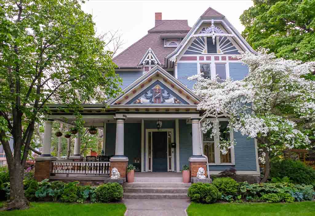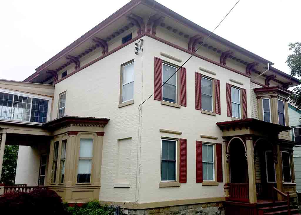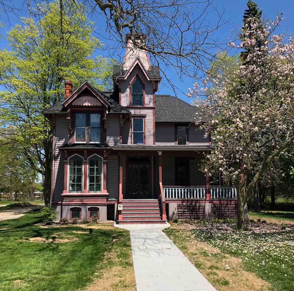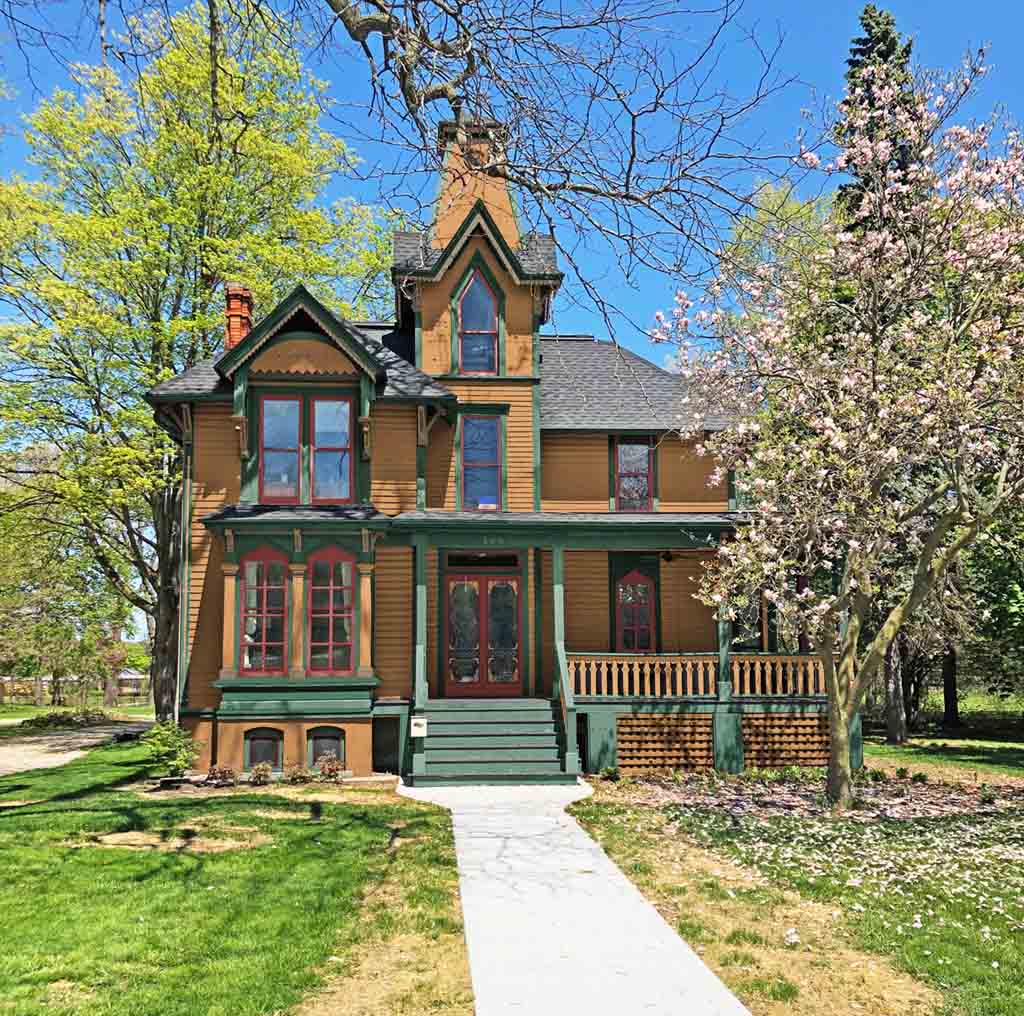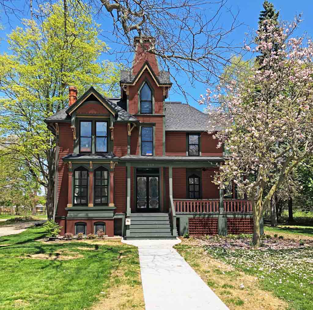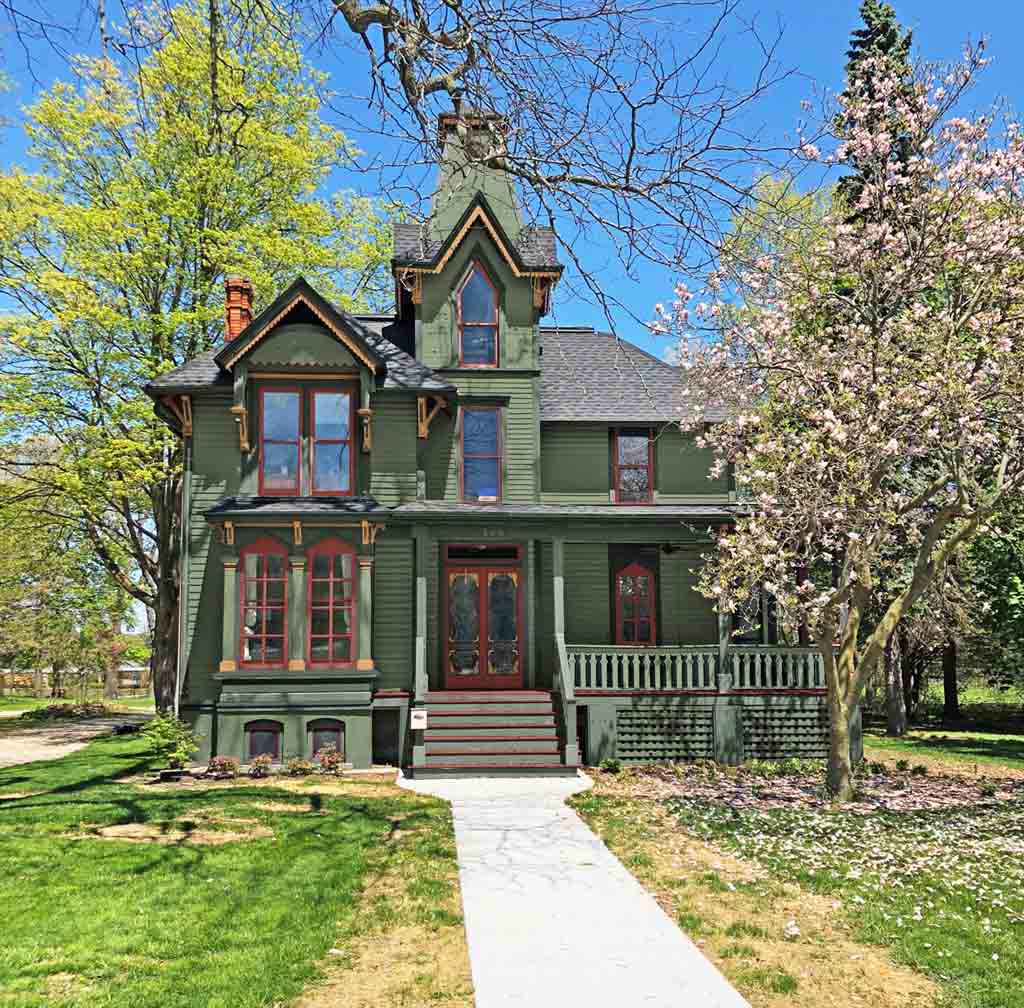 I rarely do Painted Lady houses because they are extremely difficult to do, cost the homeowner 2-3 times my regular fee and still not worth the amount of analyzing I need to do. Seriously – I need to spend a lot of time just studying the house and how the construction of the trim details. There is a logic to color placement and it is difficult to follow and see if a house like this has the colors in the right places. With all the color confusion maybe it doesn’t really matter to most people but it should. The blue is the before photo. I avoid using blue since it is not a historic color. There were some color placement issues I fixed although no one would probably even notice them. Can you find them and win a prize? Only kidding! If I wasn’t that busy it may be fun to do. This is a great house and the property is also beautiful and well cared for by a very good homeowner and steward of a historic building.