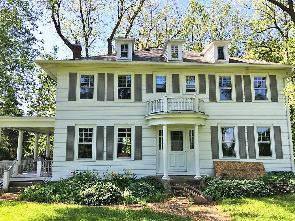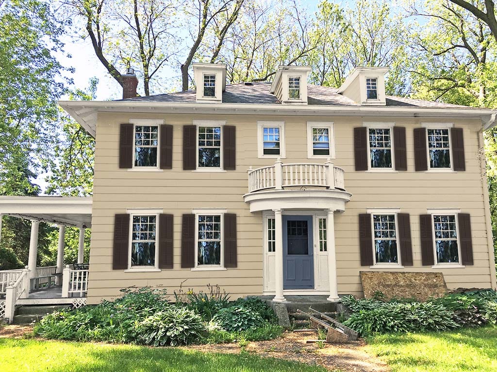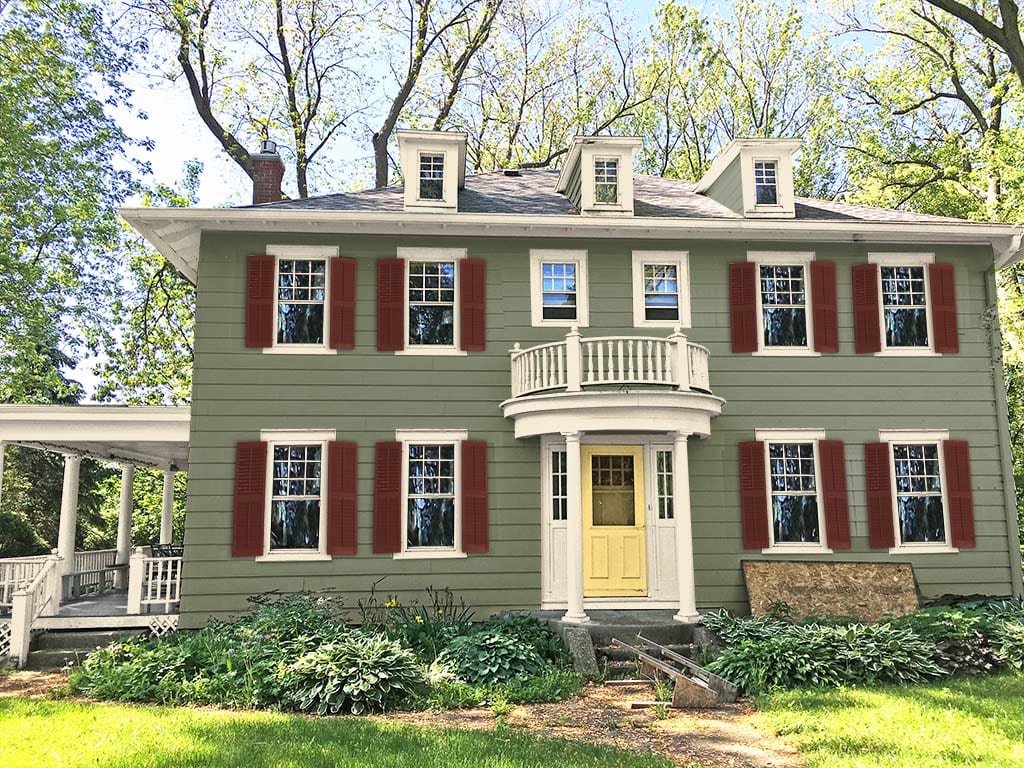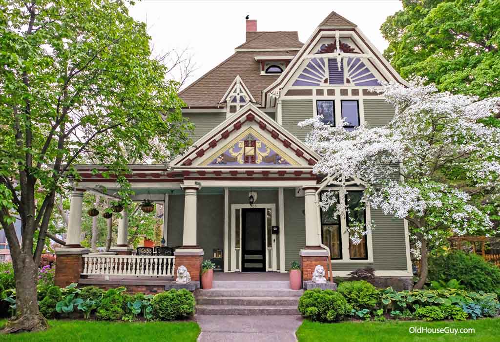 This 1880 home was painted in bright cheap looking clown colors before the house was sold. It’s not so much the bright garish colors but the use of white on the windows and the gable. First the windows are actually painted teal to match the trim and the storm windows are white. Both the main window and the storm window must match. Additionally the window should be a contrasting color to the trim. This is an unfinished look for an old house. It’s like wearing pants without a belt. Something is missing and it looks sloppy. I wonder if the previous homeowners looked the same.