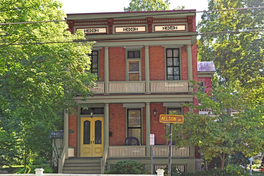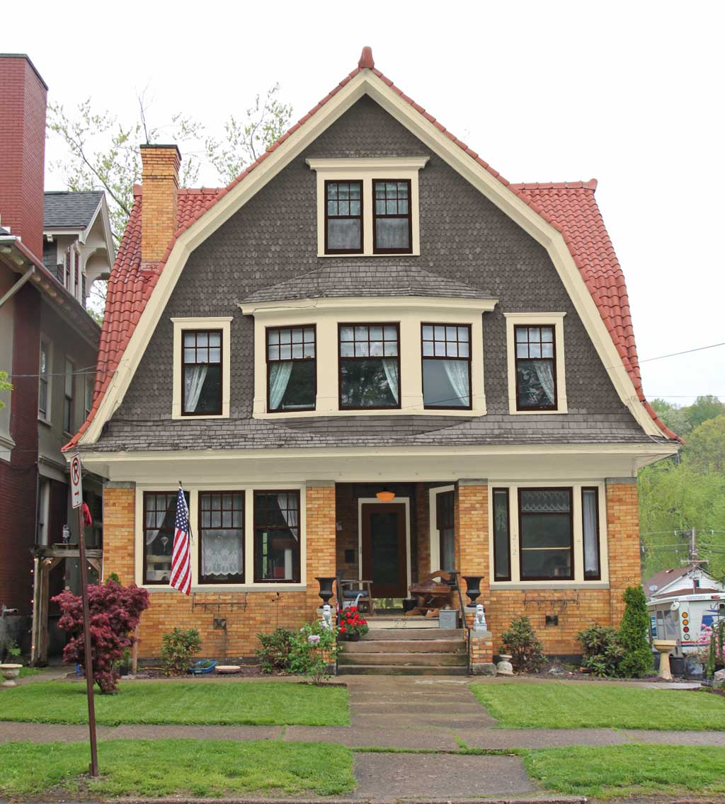 First there are different types of siding with different colors. All the siding needs to be one color. Also notice the trim. The trim and siding color are both the same color resulting in the lack of form and structure. Copper gutters break up the flow of the trim but that will not be changed. The body of the house must be one color only and the trim must have its own color that is contrasting from the body.
