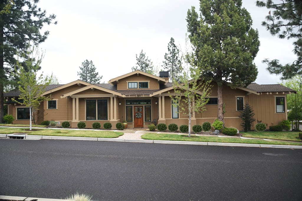 Look closely at the before photo. This is a very long house. It is a private home. There is a lot going on in the design and the color placement is making it appear that the house is a group of individual businesses grouped together each with their own entrance. However, this is one home with one entrance but the super bad color placement confuses the viewer.