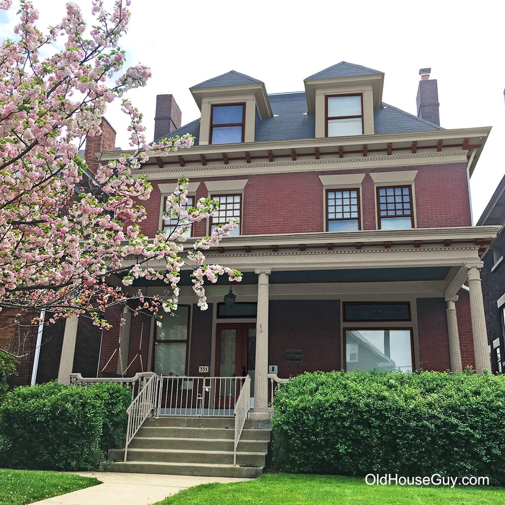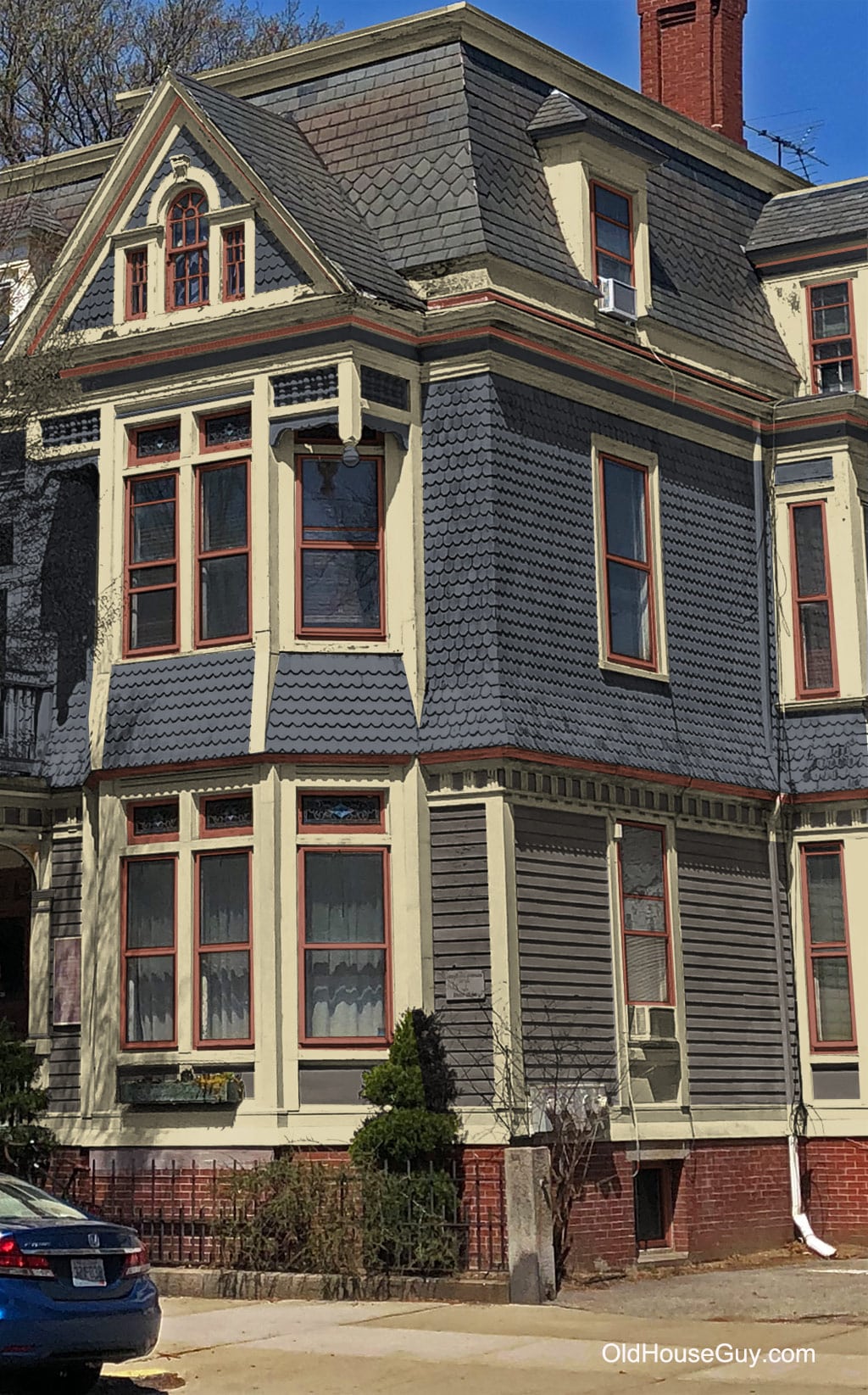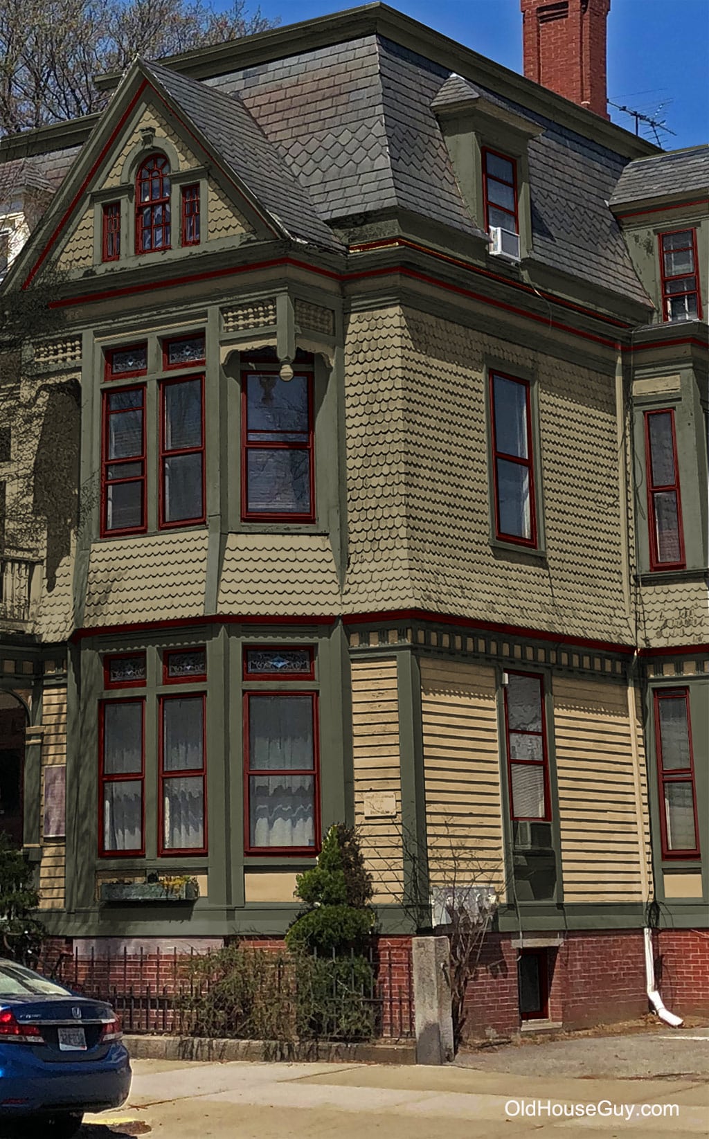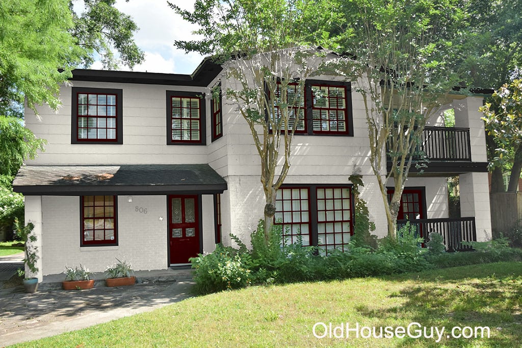 This house was a mess with the paint color placement. The columns were painted blue when they should be the trim color, the brackets under the eaves were missing the connecting trim resulting in a floating look and the white windows cheapened the look of the house.