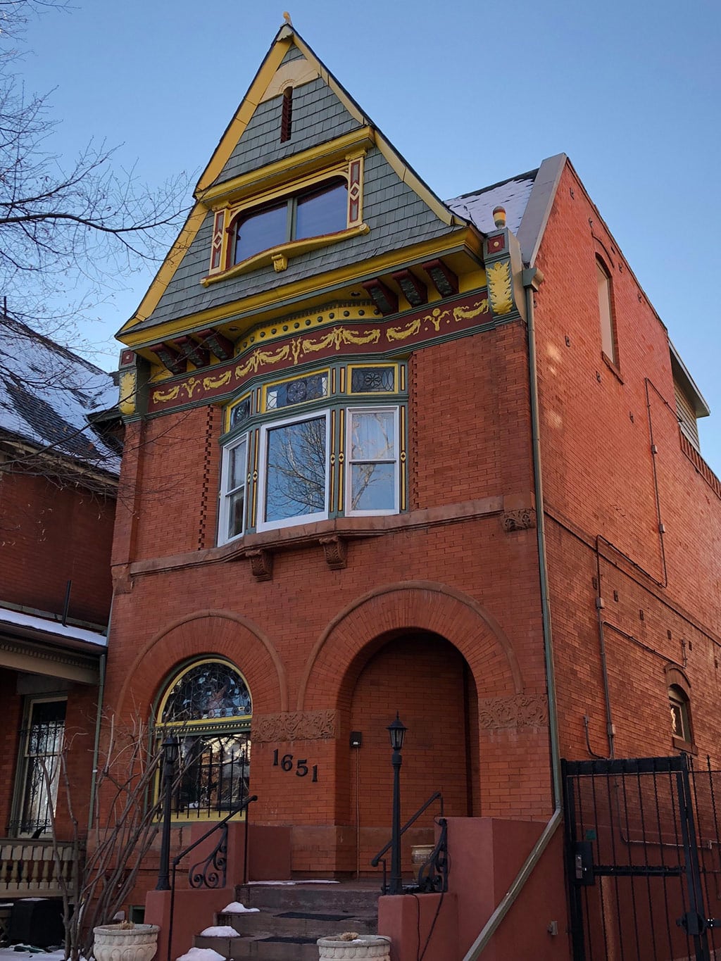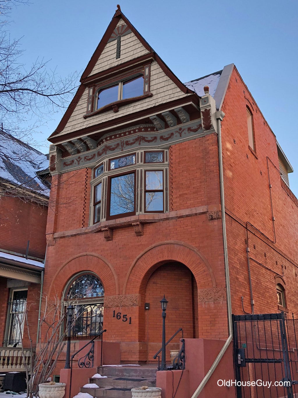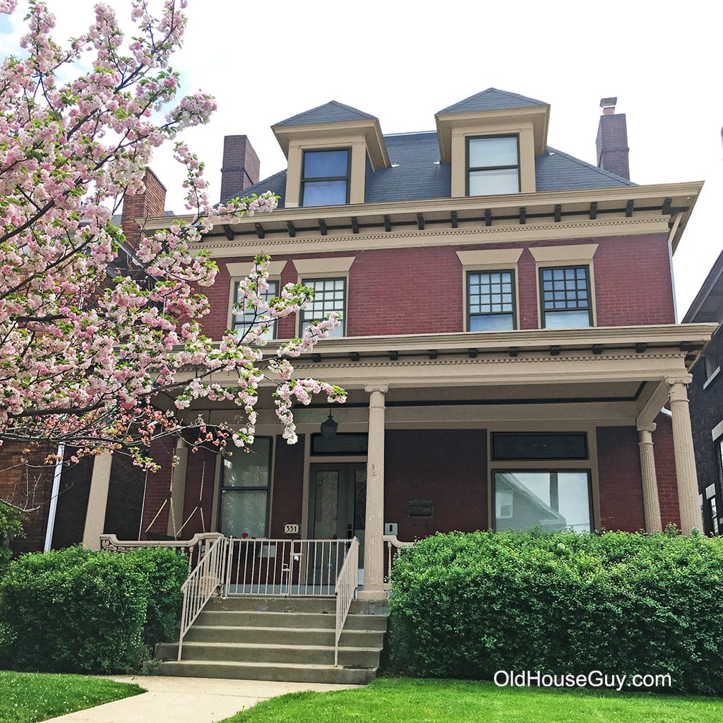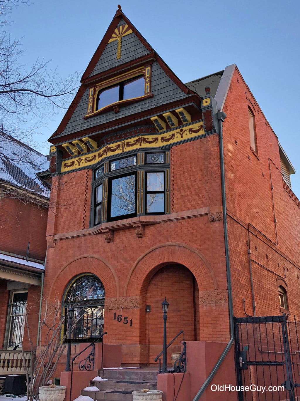 The blue window sash works well with the house colors but the soffit should not be painted blue and the balustrade is accented with blue in odd places. Aside from correcting the color placement the homeowner wanted to make a bold statement with their home. The contrasting color definitely do the job and make the house look elegant.