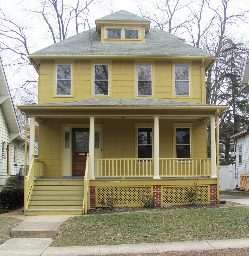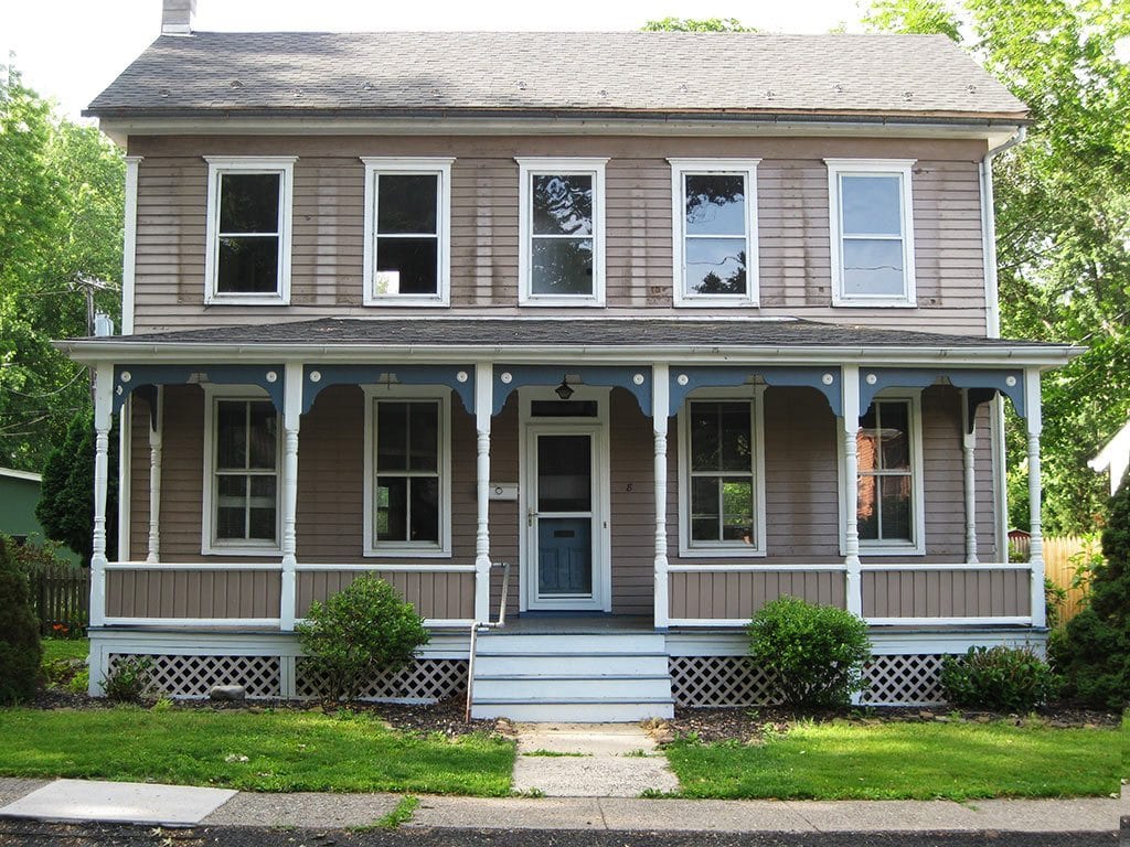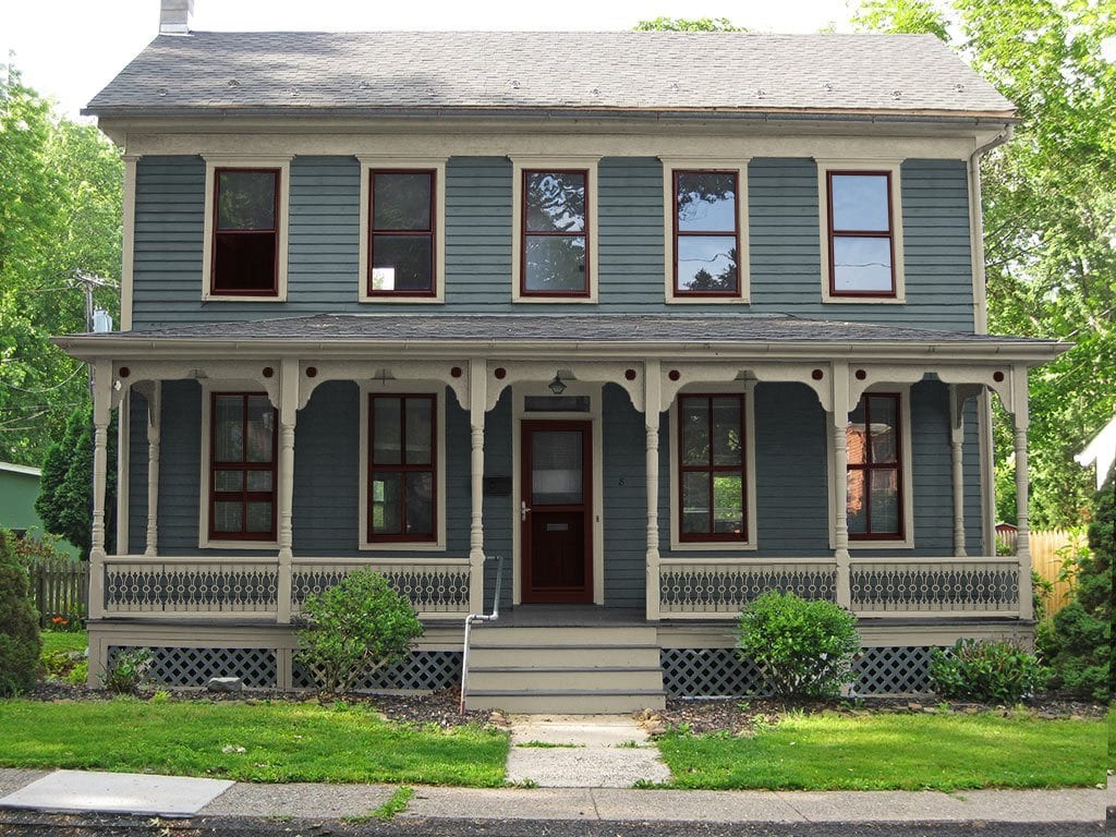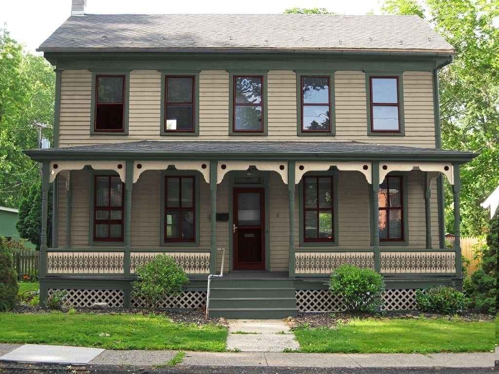 Notice in the before image how the spindles in the upper porch rail disappear when picked out in a contrasting paint color. Painting them the same color as the trim now makes them visible.