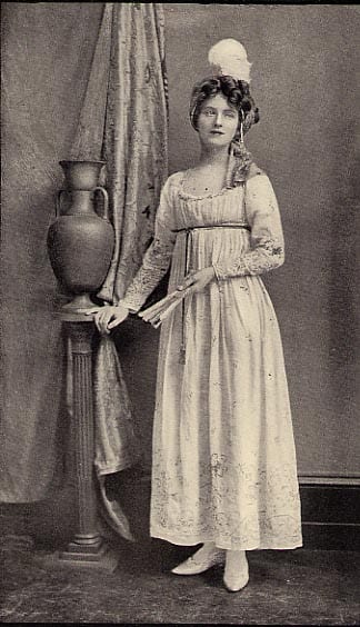 From the separation of top and skirt being at the waist another style became available with the separation raised higher. This was not as high as an Empire waist but somewhere in between. (photo’s courtesy of Vintage Dancer)